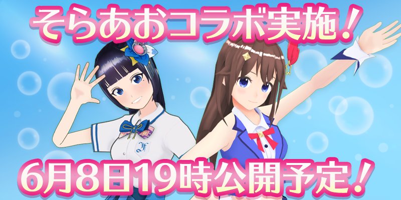 6月8日19時に2人のチャンネルで1曲ずつアップするね!()ハッシュタグは #そらあお です!